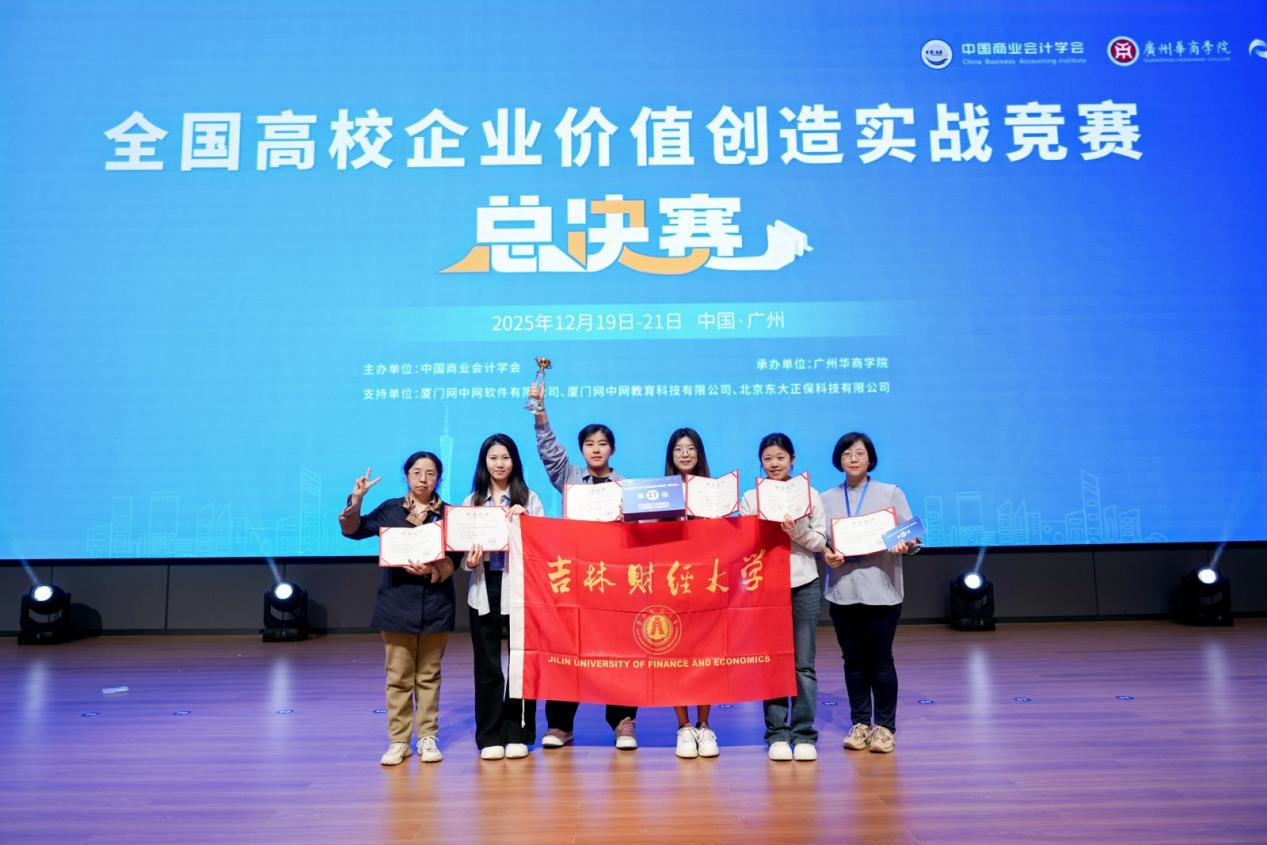 本网讯(会计学院 供稿)12月20日,在2025年第八届全国高校企业价值创造实战竞赛总决赛上,我校由会计学院刘艺凡、李思琪、张慧鑫、齐航四位同学组成的参赛团队,以总成绩全国第一名的好成绩,成功斩获大赛一等奖。作为全国高校财会领域极具影响力的赛事,本届大赛由中国商业会计学会主办,广州华商学院承办,厦门网中网软件有限公司、厦门网中网教育科技有限公司和北京东大正保科技有限公司提供支持。赛事聚焦“企业价值创造实...