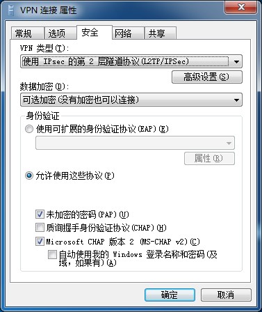 10.继续在创建的VPN上单击鼠标右键,选择“属性” 在弹出的页面选择“安全” 将VPN类型选项改为“使用IPsec的第2层隧道协议(L2TP/IPSec)” 将数据加密选项改为“可选加密” 在“Microsoft CHAP 版本 2”选项前面打√。 在“未加密密码(PAP)(U )”选项前面打√。 选择页面上端的“网络” 双击“Internet协议版本4”,在弹出的常规页面将“自动获得DNS服务器地址”选为“使用下面的DNS服务器地址”,手动输入 202.98.0.68 。添加完毕单击确定
