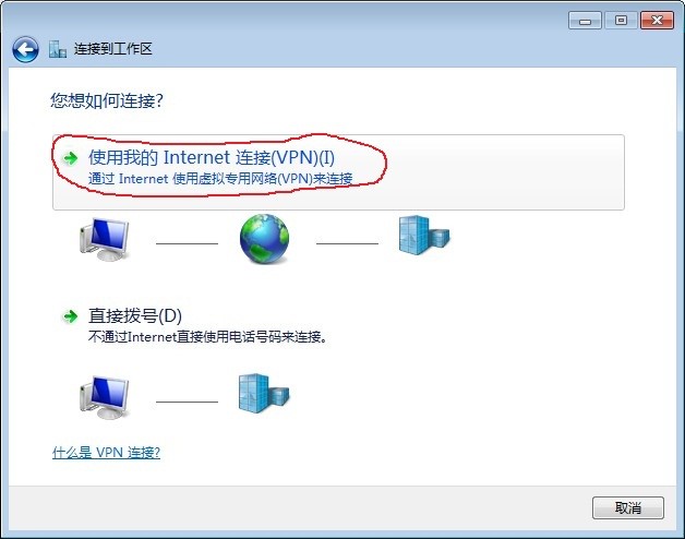 | 4.选择"使用我的Internet连接(VPN)(I)" |