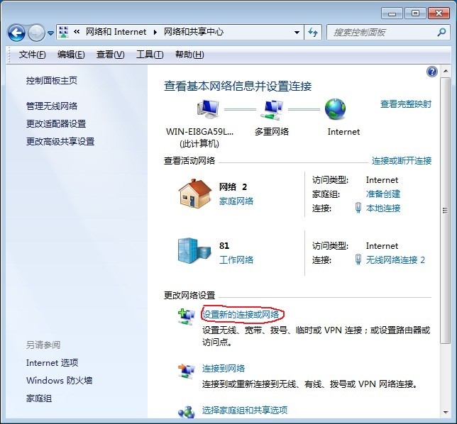 | 2.选择"设置新的连接或网络" |