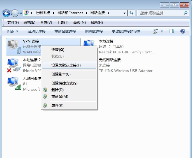 | 9.找到你创建的VPN连接,单击鼠标右键选择"创建快捷方式",在桌面上创建一个VPN快捷方式 |