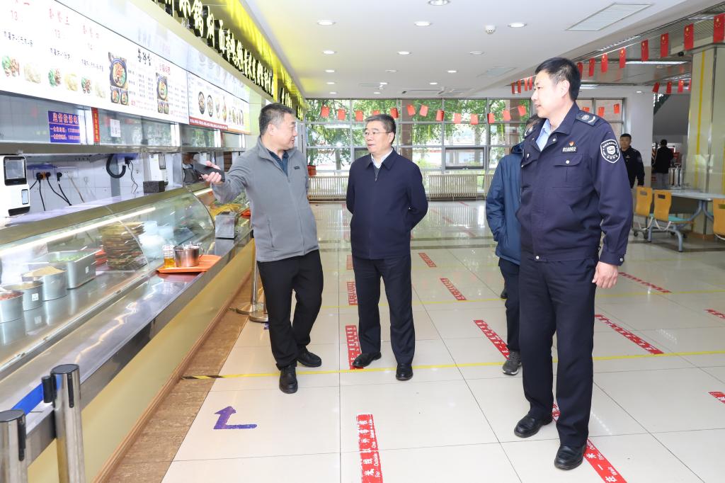 检查组一行先后来到学校图书馆、监控中心、实验楼、开闭所、第一食堂、泵房、第二食堂、学生公寓、商服中心、菜鸟驿站、校医院、健康驿站检查了值班值守、安全隐患、设备运行、食品卫生、操作规范、疫情防控等情况。