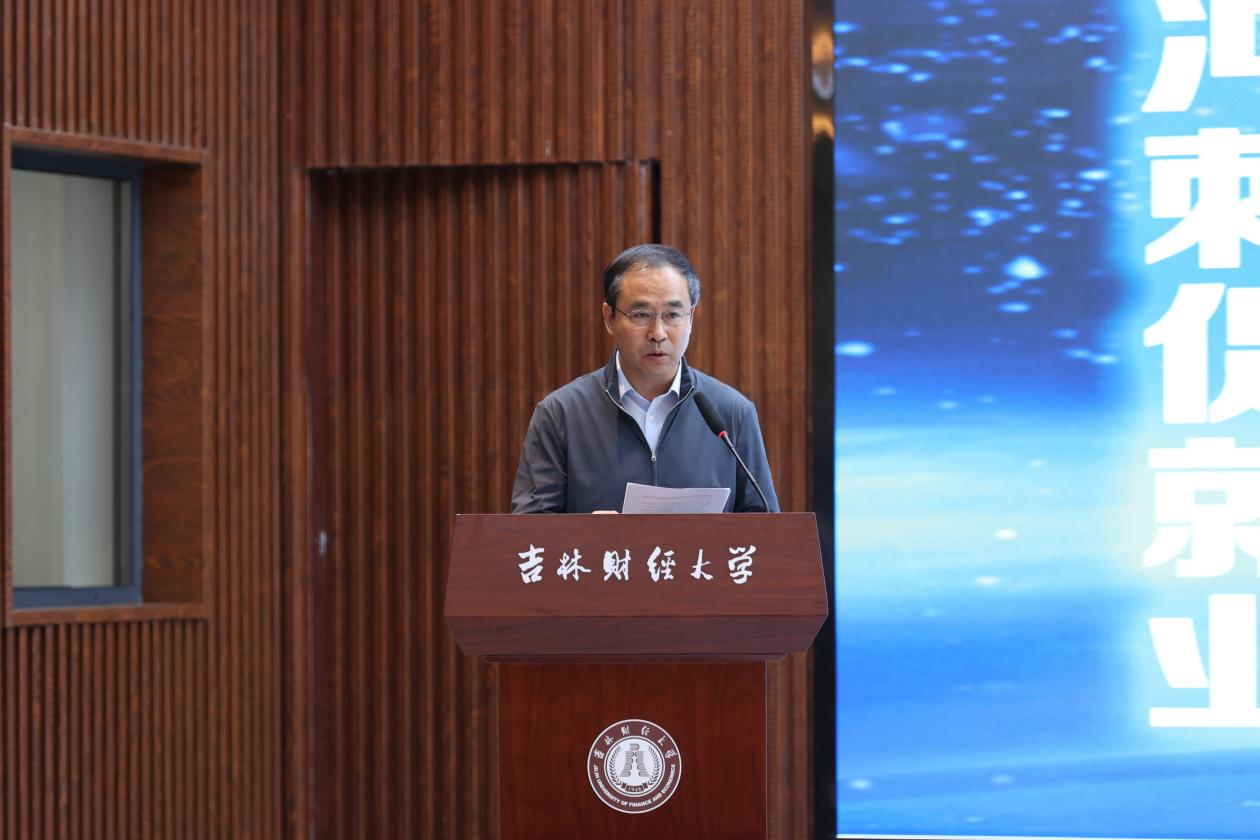 启动仪式上,刘鹤介绍了吉林省财经类院校创新发展联盟的成立情况,联盟是在吉林省教育厅指导下建立,由吉林财经大学发起,联合吉林工商学院、长春财经学院、长春金融高等专科学校、吉林省经济管理干部学院四所省内财经类院校组建的工作联盟,致力于加强成员院校间在就业创业、科研创新、联合育人、资源协同、数据共享等方面的合作,合力打造吉林省财经类院校融合发展共建共享载体。作为吉林省首个财经类创新发展联盟,联盟将不断吸纳省内其他高校的财经类院系加入,打造“5+X”联盟体系,目前已吸纳北华大学经济管理学院、吉林农业大学经济管理学院、长春大学经济学院、长春人文学院商学院、长春工业大学人文信息学院商学院、长春光华学院商学院六所院校的财经类院系加盟。