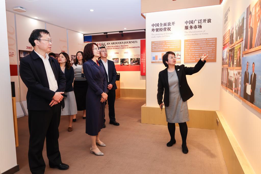 会前,马秀颖一行参观了上海对外经贸大学博物馆展览、国际经贸创新与治理研究院暨决策咨询研究基地、WTO 亚太培训中心等场所。