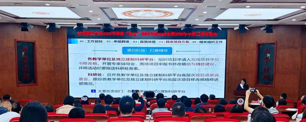 祝国平在主持会议时强调:一是学校党委高度重视,书记、校长同台部署,释放出“能攻坚、必突破”信号,推动科研水平整体提升;二是以目标导向牵引创新,统筹多领域、多部门协同、实行全流程激励,将“个人课题”升级为“共同任务”;三是举全校之力打好总体战,统筹资源做到学校-学院-教师梯队同频共振,打造“人人想申报、层层能托举”的良性生态。他希望,各单位把国家“两金”项目培育列为年度重点,完成各阶段辅导;全体科研人员要自觉对标、融入学术共同体,合力实现2026年项目量质双升。