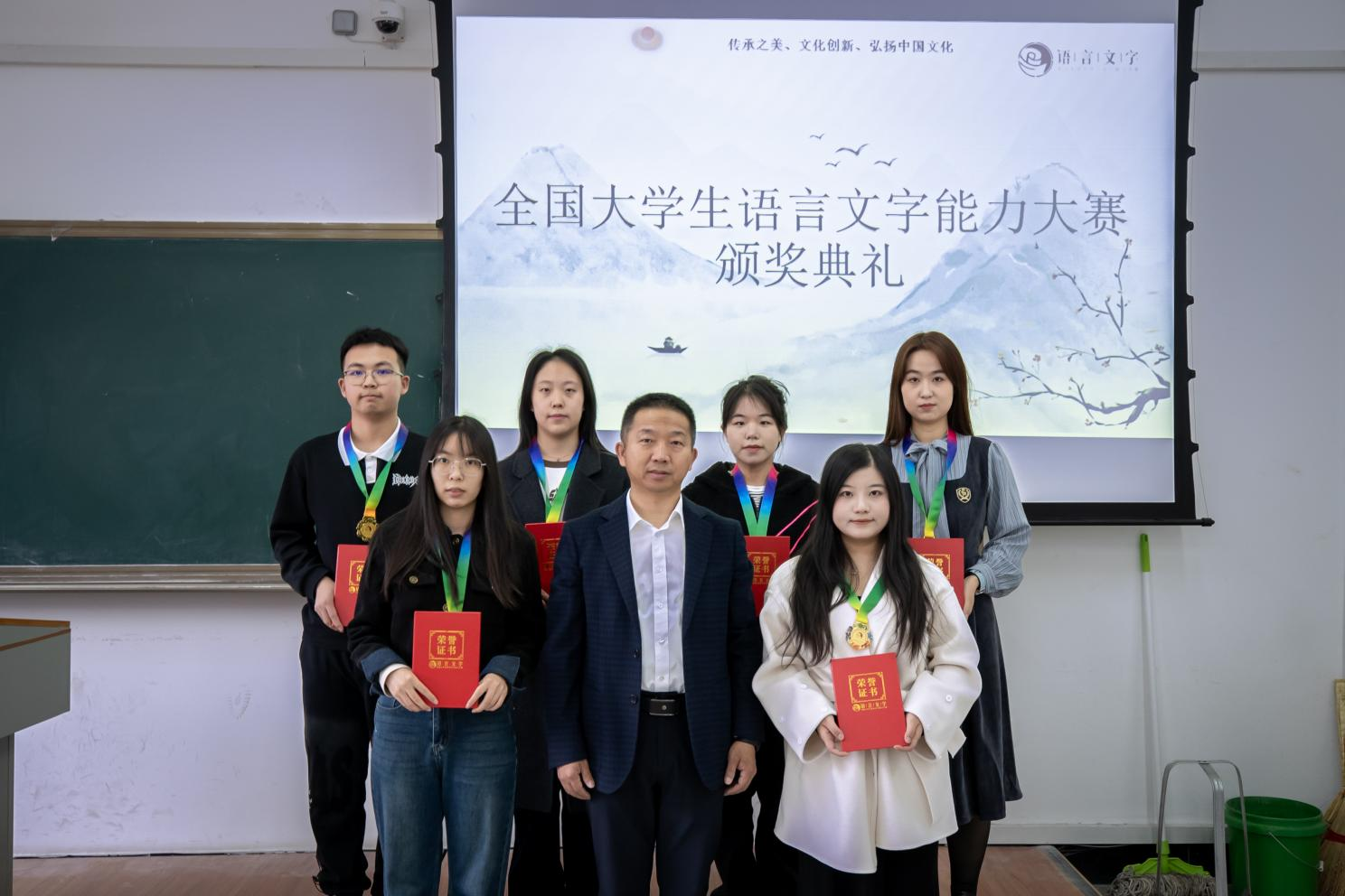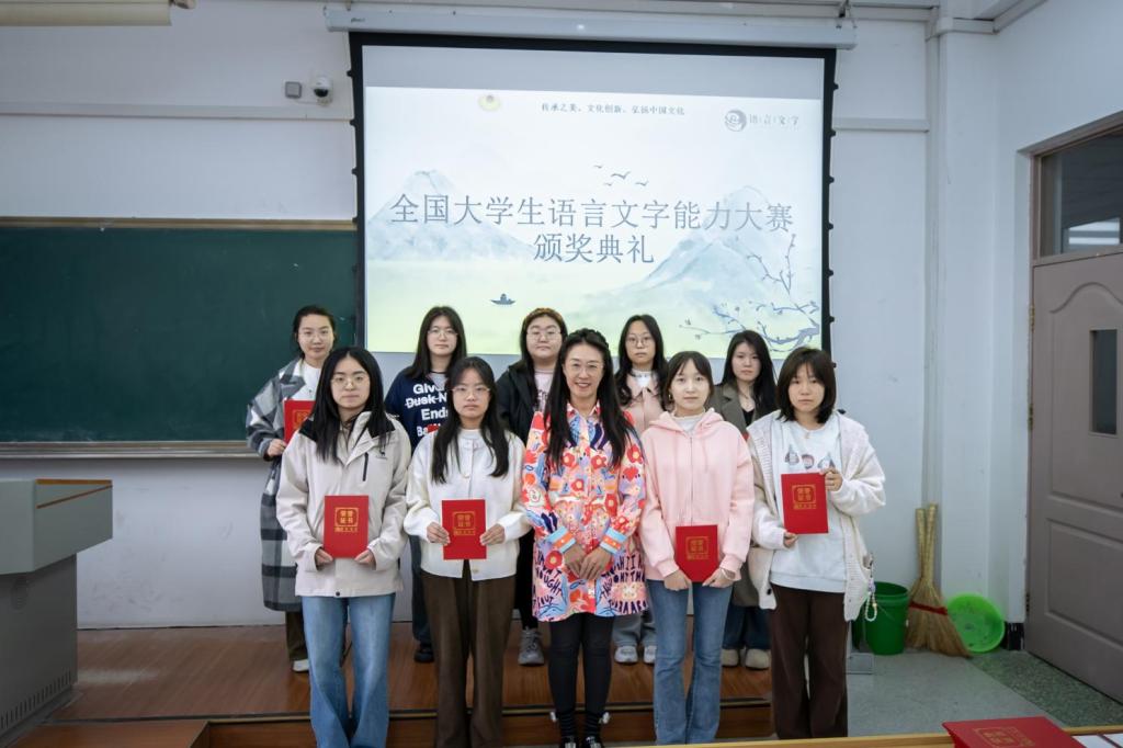 本网讯(语言文化学院 供稿)近日,第七届全国大学生语言文字能力大赛决赛结果揭晓,我校学生荣获国赛三等奖以上奖项36人,省赛三等奖以上奖项70人,获奖层次与数量实现历史性突破;语言文化学院教师朱春雨被授予“优秀命题老师”荣誉称号。