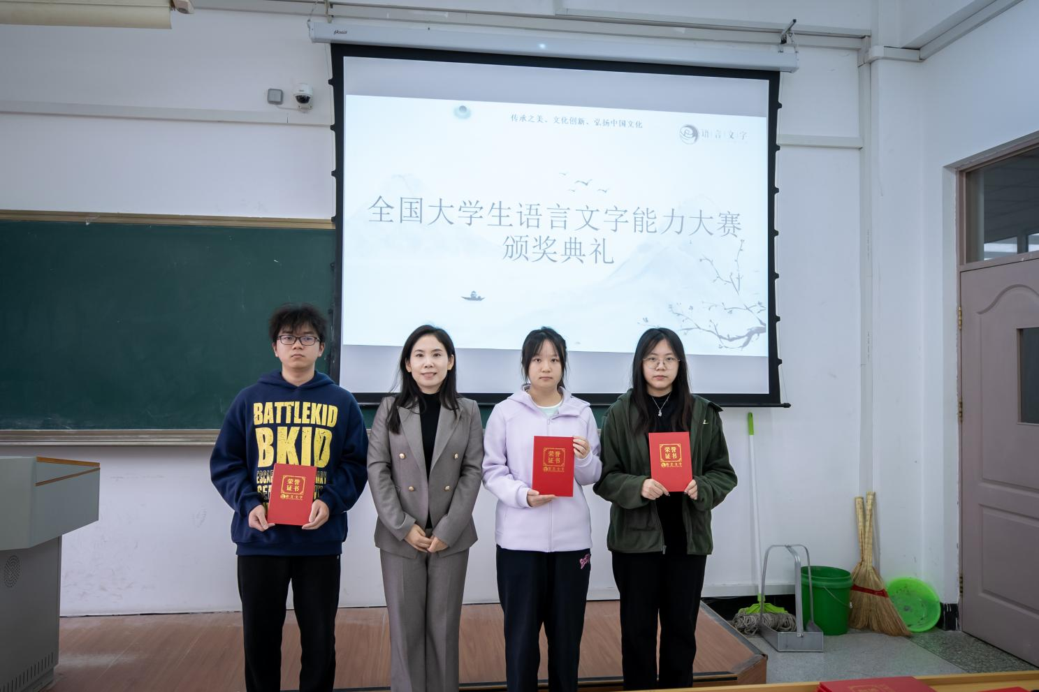 为表彰先进,树立典范,语言文化学院于10月15日举行了颁奖典礼,为在大赛中为学校争得荣誉的获奖学生颁发荣誉证书。