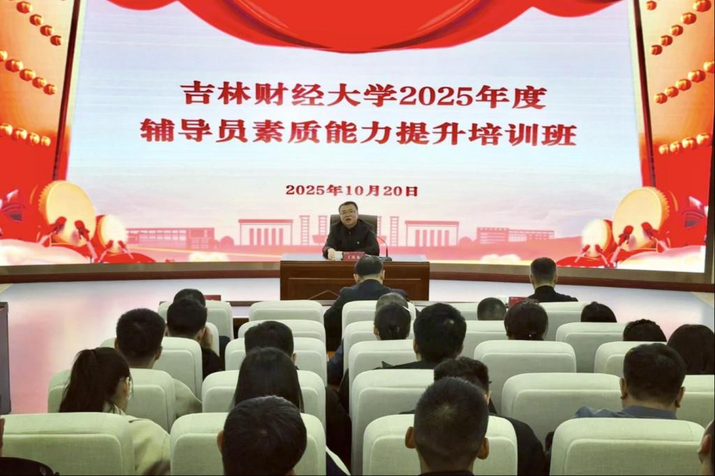 本网讯(党委学生工作部 供稿)为全面提升辅导员理论水平、职业能力与综合素养,10月20日,吉林财经大学2025年度辅导员素质能力提升培训班正式开班,党委书记张炳辉出席开班式并讲话,党委副书记霍志刚主持开班式,纪委书记、监察专员丁庆东作专题培训。