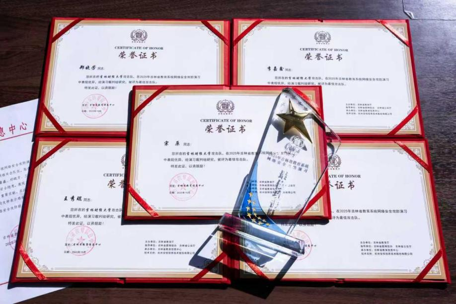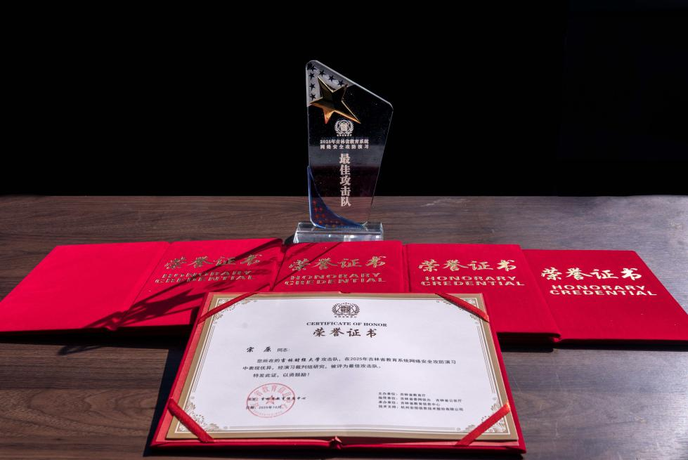 本网讯(信息管理中心 供稿)近日,吉林省教育厅2025年全省教育系统网络安全攻防演习圆满结束,我校信息管理中心攻击队凭借出色的技术表现和实战能力,从全省多支参赛队伍中脱颖而出,被授予“2025年吉林省教育系统网络安全攻防演习优秀攻击队”称号,并收到吉林省教育信息中心特别发来的感谢信,彰显了我校在网络安全领域的技术实力,更体现了省级教育管理部门对我校信息安全工作的充分肯定。