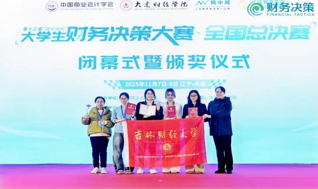 本网讯(会计学院 供稿)11月8日,2025年第十三届“网中网杯”大学生财务决策大赛全国总决赛圆满收官。我校由会计学院吴钰颖、吴斯琦、周潞、李晨竹四位同学组成的代表队取得了全国二等奖的优异成绩,同时创下我校参与该赛事以往成绩的新高。