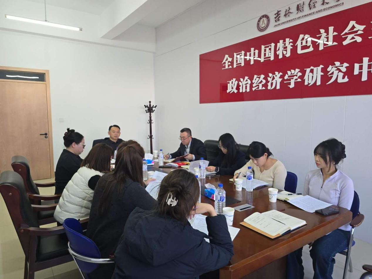 座谈会上,中特中心7位专职科研教师汇报了学习党的二十届四中全会精神和《中共中央关于制定国民经济和社会发展第十五个五年规划的建议》的心得体会,围绕“人文经济学赋能文化产业高质量发展的内在机理”“全球金融治理改革导向下人民币发行的‘国际协同-自主规制’平衡机制研究”“数智化驱动现代生产性服务业与先进制造业融合发展”“畅通要素流动推动城乡融合发展的创新路径研究”“人工智能范式下数据要素资本化的理论逻辑、实践悖论与治理进路研究”“数据要素化驱动农业新质生产力发展的实证研究——基于吉林省‘吉农云’实践分析”“吉林省开发农业多种功能发展各具特色的县域经济研究”“投资于物和投资于人紧密结合”“建设开放共享安全的全国一体化数据市场”“培育发展区域性中心城市”等理论问题,从选题依据、研究意义和研究基础等方面进行了交流。