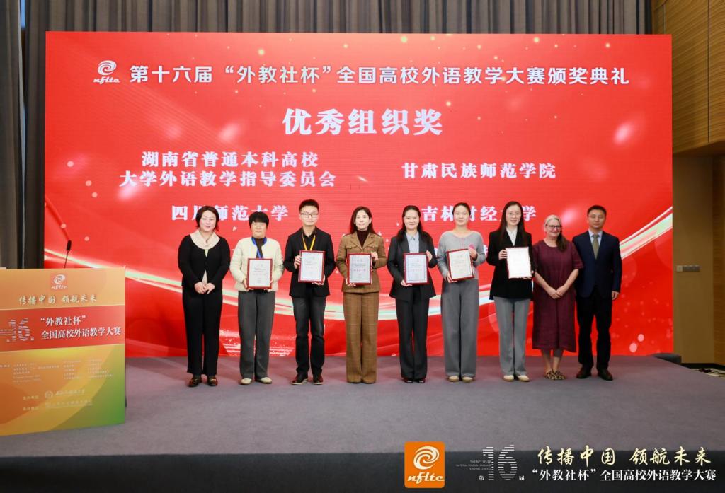今年6月由我校承办的吉林赛区决赛中,郭昕彤从全省26所高校的43名选手中脱颖而出,以综合课组第一名的成绩斩获特等奖,成为该赛道吉林省唯一晋级全国总决赛的教师代表。在全国总决赛舞台上,综合课组汇聚来自全国各省市的30名选手同台竞技。郭昕彤最终位列第19名。“优秀组织奖”的授予,是大赛组委会对我校外语教学成效与赛事组织保障的双重肯定。