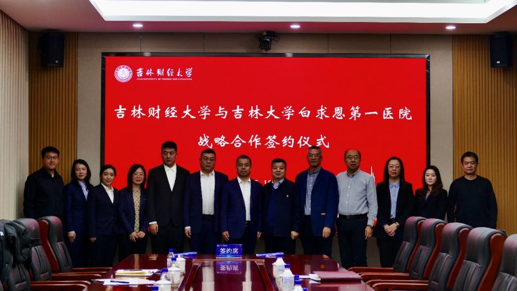 仪式上,会计学院院长王丽南与吉林大学白求恩第一医院财务部主任韩睿喆共同签署《吉林大学白求恩第一医院与吉林财经大学会计学院战略合作框架协议》。