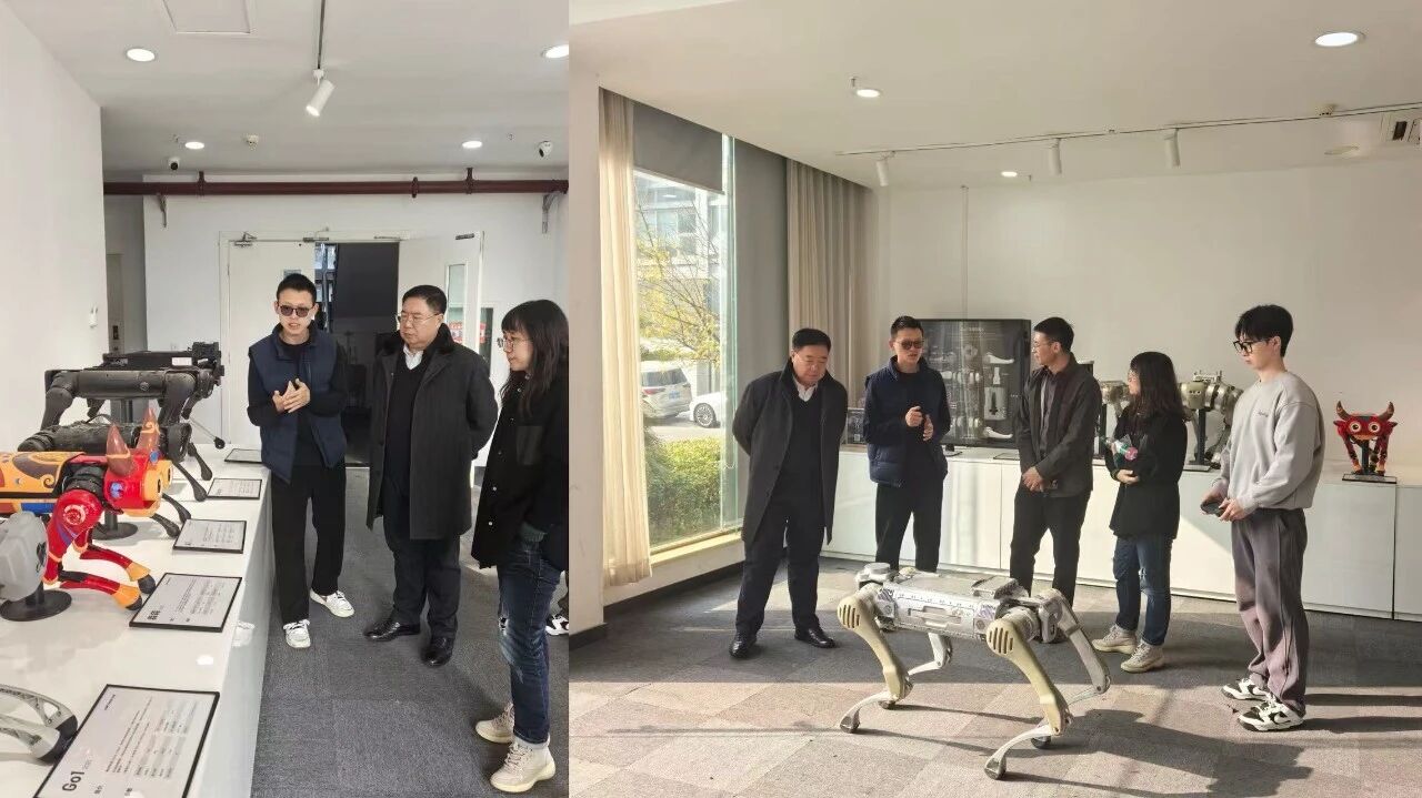 当天,张炳辉一行到访杭州宇树科技有限公司,参观了企业人形机器人、四足机器狗等核心产品展厅,与负责高校合作业务的负责人座谈交流,详细了解企业在具身智能技术研发、市场应用布局及校企合作模式等方面的情况,深入探讨包括学生实习实训、横向课题联合攻关等合作路径,为后续精准对接企业需求、推进人才定制化培养建立前期基础。