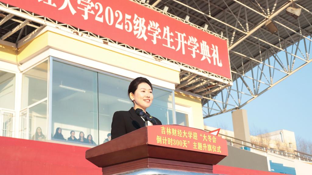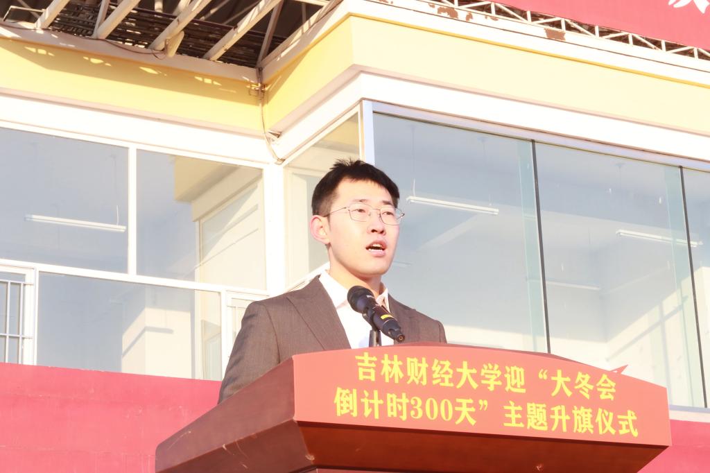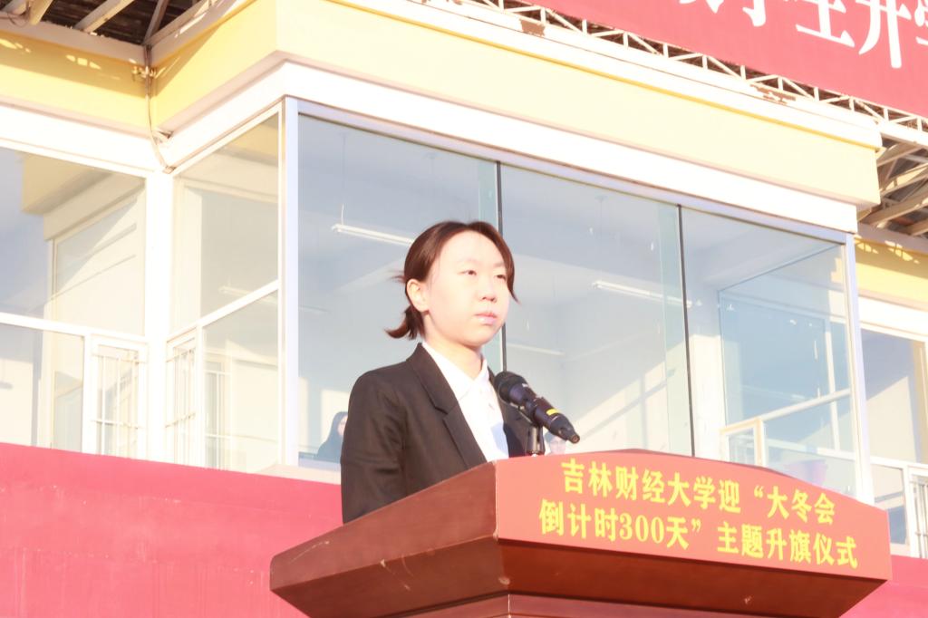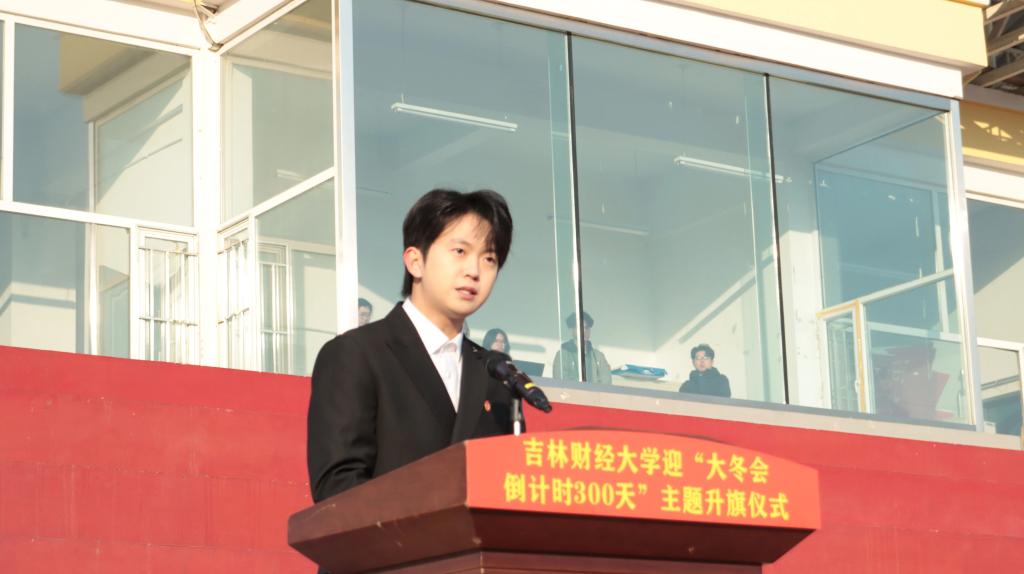 国际教育学院教师慈璇结合辅导员工作经历及2018年瓦萨国际滑雪节“冰雪天使”季军参赛经验作分享,她表示“大冬会”的举办是“三亿人参与冰雪运动”的生动写照,更是吉林持续系统性布局文旅产业、加快冰雪强省建设的宝贵机遇。校学生会执行主席、工商管理学院学生黄子轩分享了吉林冰雪旅游接待总规模、冰雪相关企业数量、冰雪运动参与人数均位居全国前列的盛况,并向全校青年发出倡议:以蓬勃朝气迎接大冬会、以严格自律要求树立先锋形象、以拳拳志愿热忱服务盛会。国际教育学院学生孟奂分享了2022年亚洲花样滑冰公开赛获得金牌的经历,她表示,习近平总书记高度重视冰雪体育事业发展,为谱写新时代中国冰雪事业新篇章提供了根本遵循和行动指南。作为新时代青年,要发扬运动拼搏精神和无悔奉献精神,为盛会贡献吉财青年的智慧与力量。升旗仪式在昂扬的团歌声中落下帷幕。