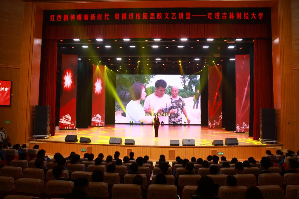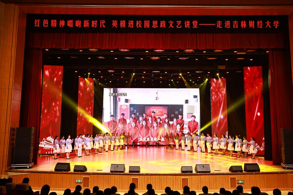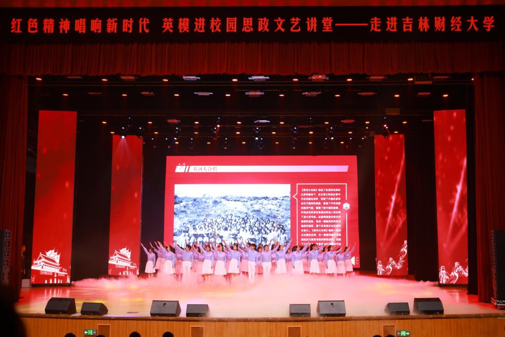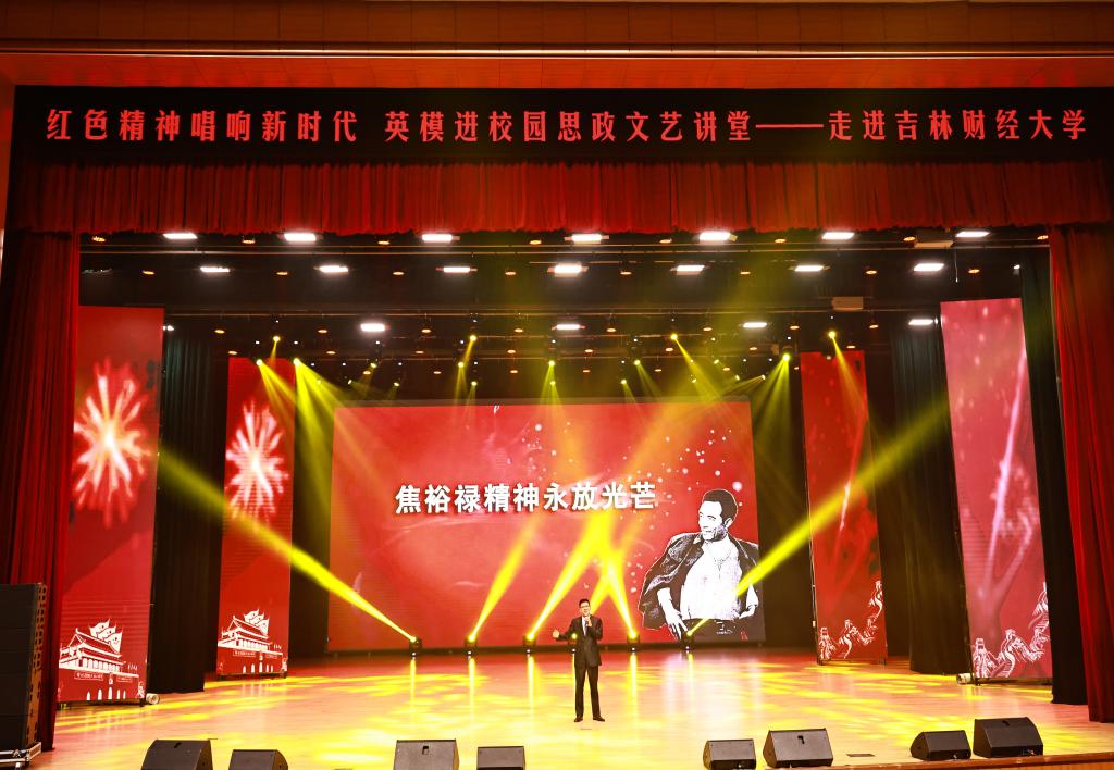 活动以红歌为媒、英模为范,将红色思政教育与财经高校人才培养深度融合。第四届全国中青年德艺双馨文艺工作者、吉林工商学院教授、吉林财经大学美育专家顾问王明明教授倾情演绎了一堂集“讲、唱、诵、互动”于一体的沉浸式红色思政课,让现场师生在红色旋律与英模故事中感悟初心使命,厚植家国情怀。