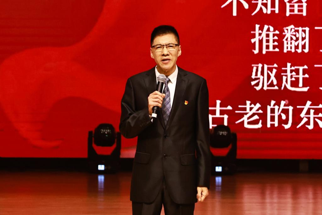 红歌主题电子宣传片带领师生重温峥嵘岁月,王明明教授深情朗诵的《真理》,瞬间将现场氛围拉入红色情怀之中。