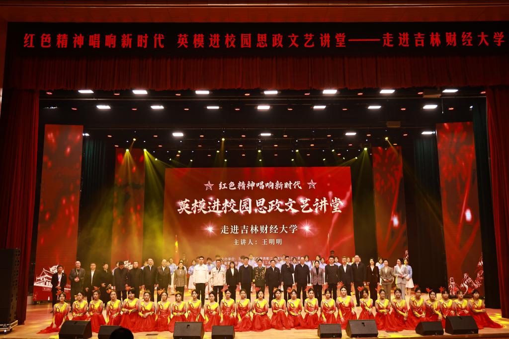 本次活动由吉林省功勋荣誉表彰工作领导小组办公室主办,省委宣传部、省人社厅、省总工会、省教育厅、省退役军人事务厅等单位联合主办,是吉林省推进高校“大思政课”建设的创新实践,更是红色精神与高校人才培养深度融合的生动探索。活动以王明明教授“红歌讲党史、红歌讲党课”成熟体系为核心,实现了“讲、唱、诵、互动”四维融合,让学子从被动聆听变为主动参与。英模代表零距离分享,让榜样力量可感可学,全流程融入的学生展演,让青年学子成为红色精神传承的主角,产生了“英模精神引领、青春力量回应”的双向共鸣。