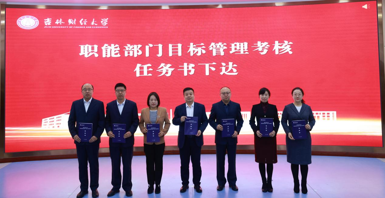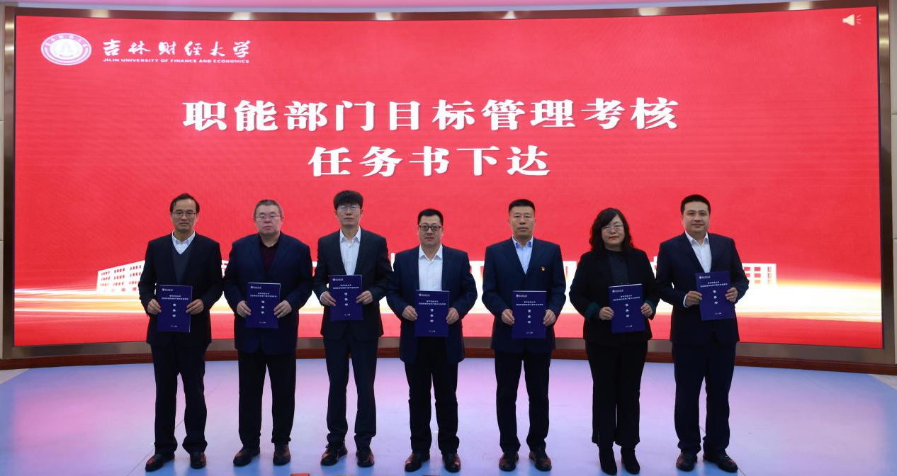 学校领导为全校36个职能部门、14个学院(部)下达目标任务书。