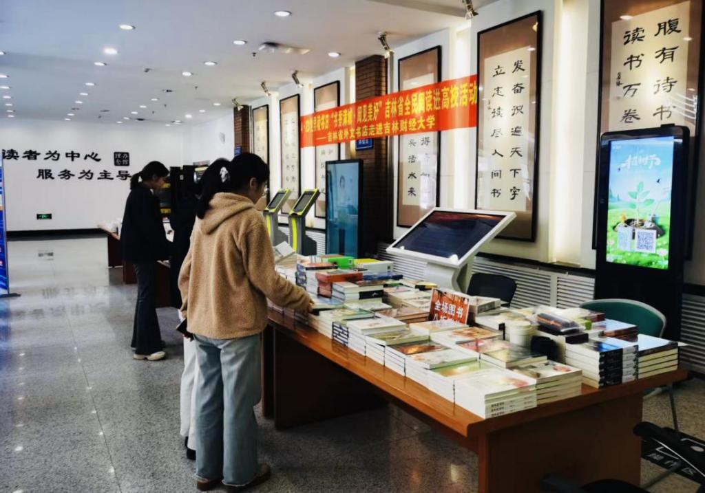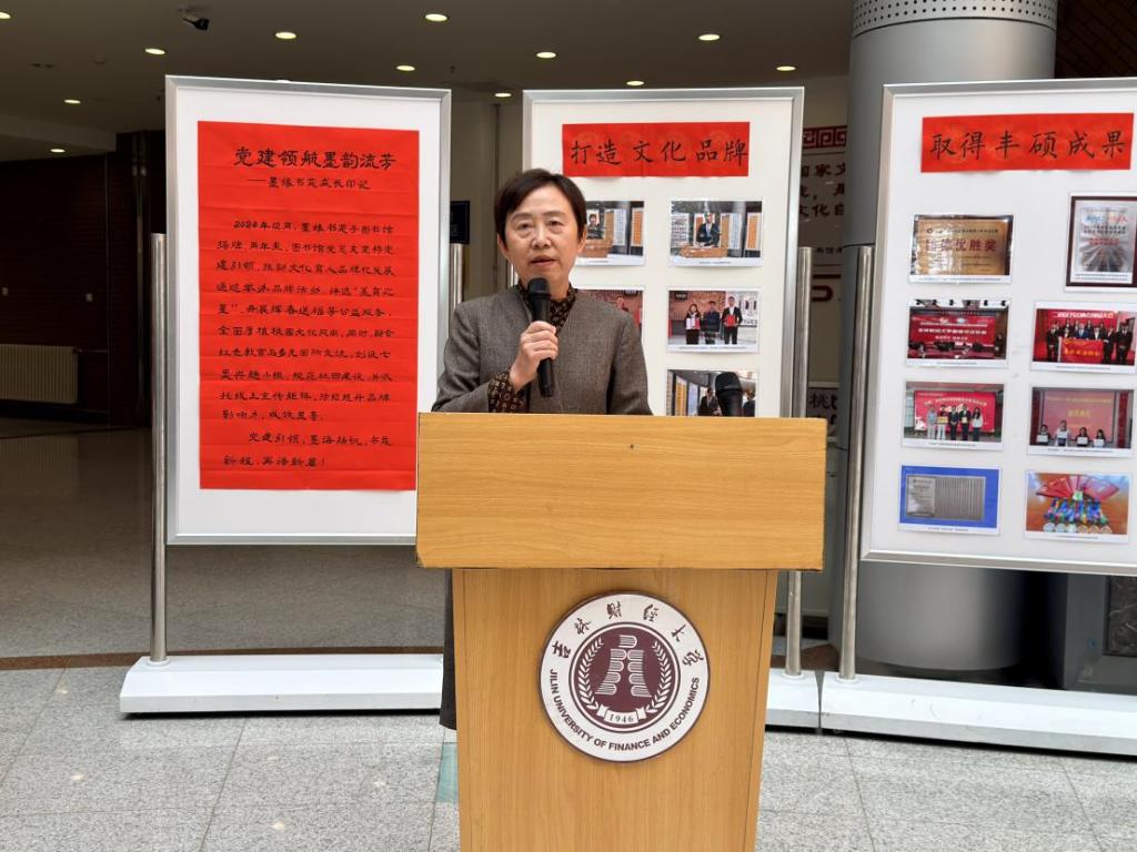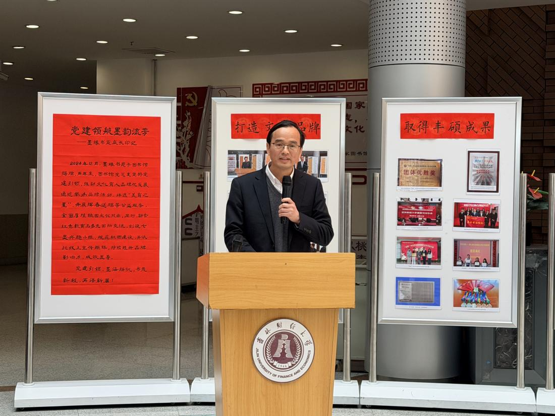 本网讯(图书馆 供稿)为全面营造爱读书、读好书、善读书的浓厚氛围,4月23日,学校图书馆联合学生工作处、校团委共同举办庆祝“4·23世界读书日”系列活动暨2026吉林财经大学读书文化节开幕式。副校长王菁华出席活动并宣布读书节开幕。