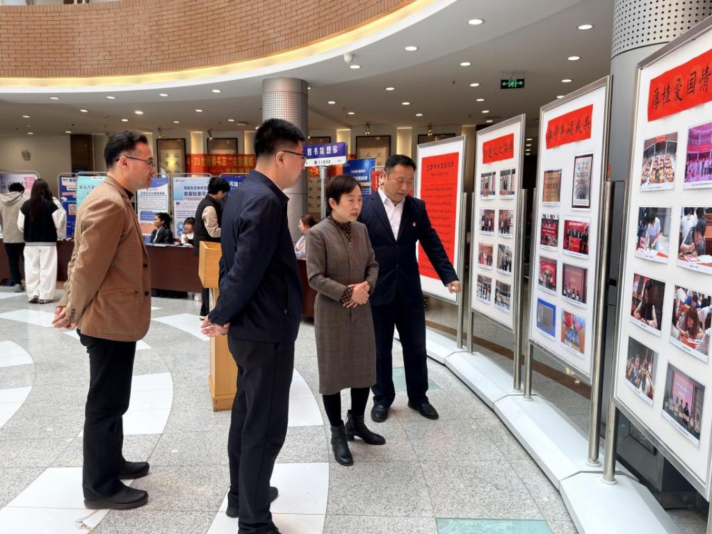 开幕式后,“数字资源伴我行”数字资源宣传推介活动、4·23世界读书日书展活动、“党建领航 墨海扬帆”墨缘书法协会图片展、4·23图书馆新书推荐活动、墨缘书法协会及隅山读书协会纳新活动在图书馆二楼大厅随之开展。