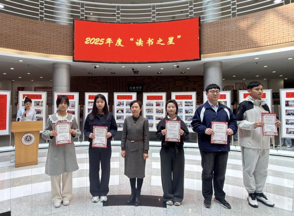随后,学校领导及相关职能部门负责人分别为图书馆2025年度“读书之星”“美育之星”、2026年第八届全国财经高校信息素养大赛初赛获奖代表、2026年吉林省“阅享吉林·书韵争锋”大学生讲书阅读挑战大赛校内初赛获奖代表颁奖。