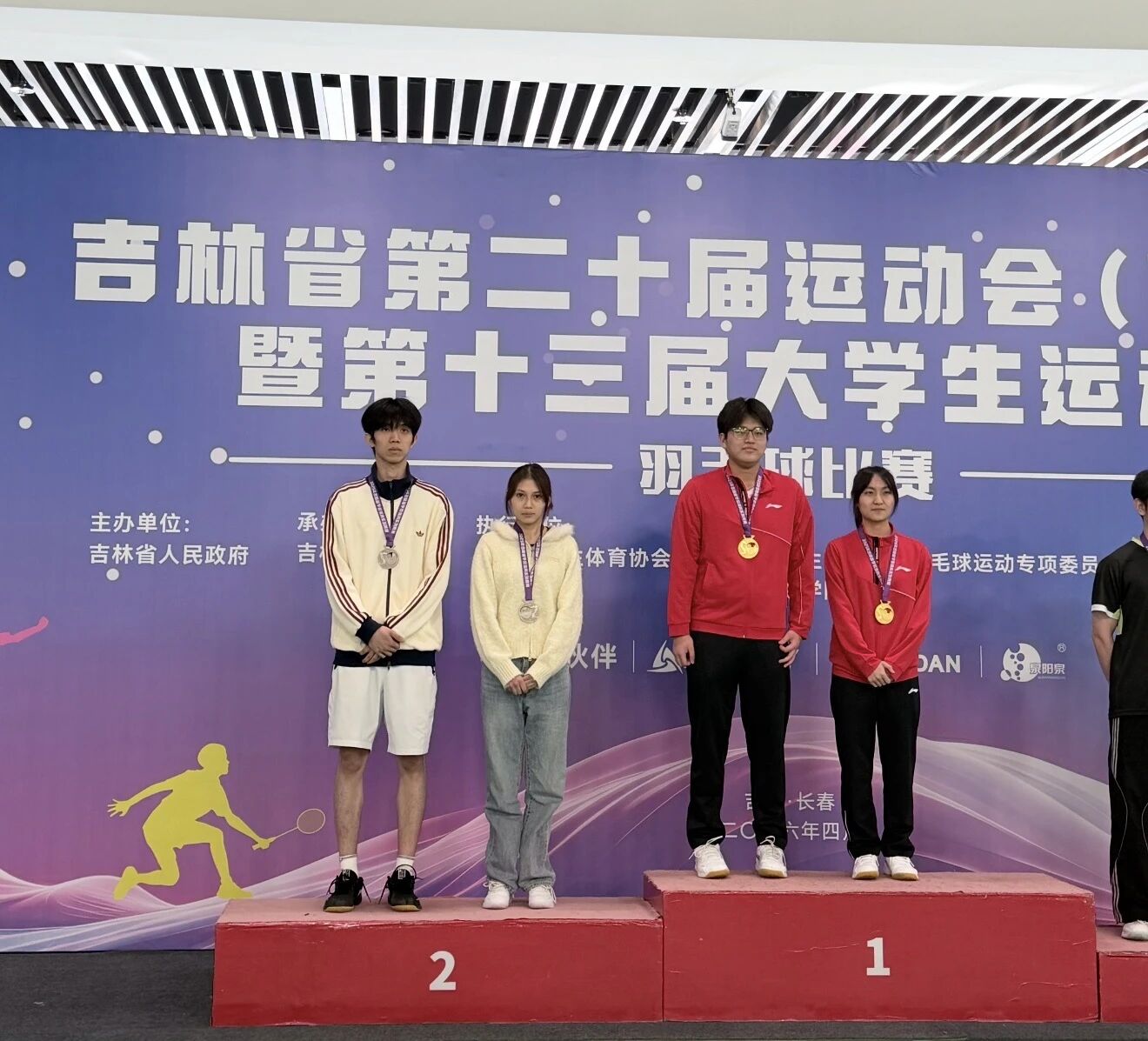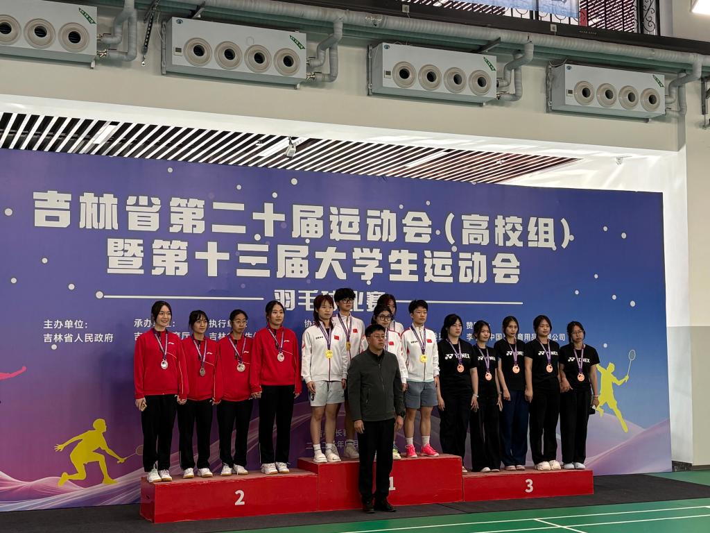 本网讯(体育教研部 供稿)4月21日至26日,在吉林省第二十届运动会(高校组)暨第十三届大学生运动会羽毛球比赛中,我校羽毛球代表队在体育教研部程禹、乔帅朝两位老师的指导下斩获多项荣誉,张书豪、孙若桐获混合双打亚军,女子团体代表队荣获甲组季军,刘佳、刘锦格获女子双打第五名。