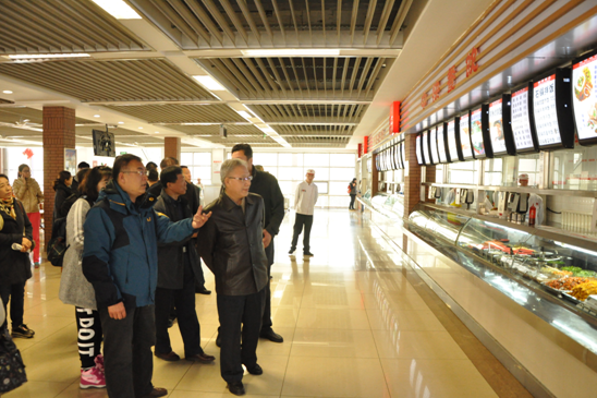 本网讯(后勤保障处 王庆国)10月30日上午,以长春市政协副主席侯治富为组长,由长春市食品药品监督管理局领导和专家及新闻媒体记者一行20余人组成的食品安全视察小组来我校进行视察。视察小组针对食品安全,察看了学校饮食服务中心的卫生设施和设备使用、后厨操作和餐厅服务等情况;召开了学生座谈会,听取了同学对食品安全方面的意见。