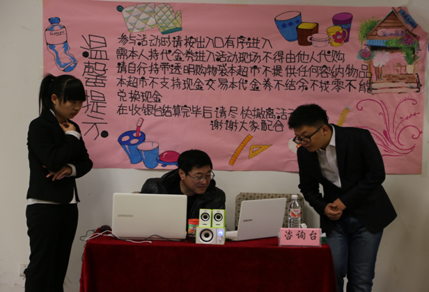 11月25日下午13:30,我校公共管理学院第四届“爱心超市”活动在图书馆一楼1019室顺利开办。“爱心超市”里整整齐齐摆满了中性笔、笔记本、洗衣粉、香皂、卫生纸、保暖内衣等文具用品、洗护用品和生活用品,都是同学们日常用到的物品。超市一开张,公共管理学院的157名贫困学生,就秩序井然的拿着学院免费发放的200元购物券进入“爱心超市”,选购自己需要的用品。原来“爱心超市”说是超市,其实并不是真正的超市,因为里面所有的东西都是免费的。它的宗旨就是帮助公共管理学院贫困学子,为他们减轻生活上的负担。 “爱心超市”虽然小,但奉献的爱心可不少,自成立以来,至今已有505个贫困生得到帮助,共计发放了各类物品价值101000元。