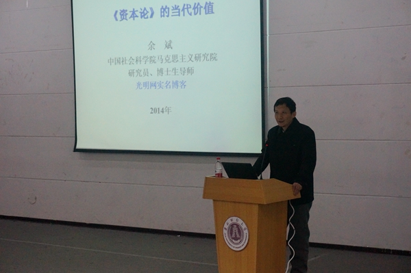 我校积极响应党中央的号召,为适应社会发展新动向和经济发展新常态,在学校副校长丁堡骏教授的大力倡导下,经济学院本科生《资本论全卷辅导计划》系列学术活动之首届青年马克思主义经济学论坛于12月17日在第一学楼1101报告厅隆重举行。中国人民大学邱海平教授、中国社会科学院马克思主义研究院余斌研究员应邀参加本次论坛。副校长丁堡骏教授、经济学院和马克思主义经济学研究中心相关领导、老师以及经济学院全体本科生、研究生参加了此次活动。本次论坛以“论政治经济学研究对象理论的创新与发展”为主题,共分为专题学术报告会和学术论坛两部分。