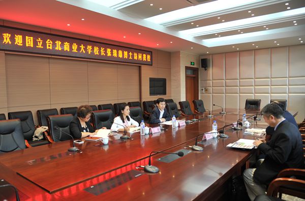 本网讯 9月24日,台湾台北商业大学校长张瑞雄、国际暨两岸事务处处长周旭华一行来我校交流访问。副校长张越杰在综合楼第二会议室会见了代表团一行,国际合作与交流处相关人员参加了会见。
