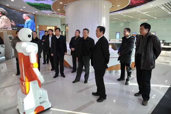 会谈前,在九台农商银行首席运营官、副行长、域外管理部总经理梁向民的陪同下,校党委书记周知民、校长宋冬林、副校长张新宇一行参观了九台农商银行“科技银行”惠裕旗舰店。