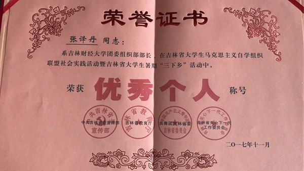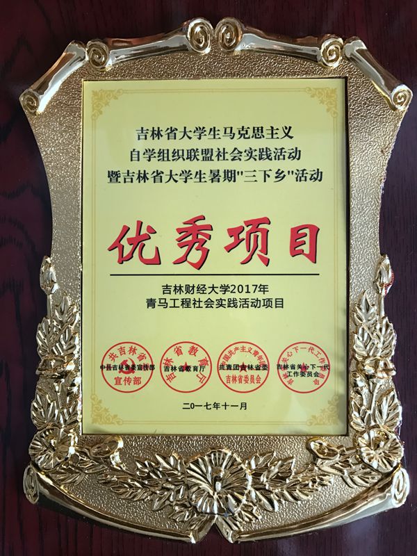 本网讯 近日,首届吉林省大学生马克思主义自学组织联盟社会实践活动暨吉林省大学生暑期“三下乡”活动颁奖典礼在吉林大学举行。此次活动由中共吉林省委宣传部、吉林省教育厅、共青团吉林省委、吉林省关心下一代工作委员会共同主办。共青团吉林财经大学委员会获优秀单位奖,吉林财经大学青马工程赴西安延安社会实践活动获优秀项目奖,校团委组织部部长张译丹获优秀个人奖。