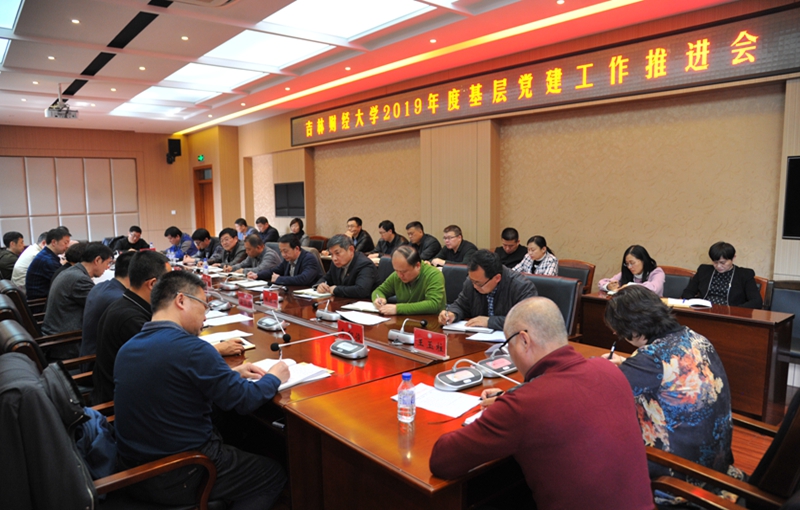 赵惠敏回顾总结了我校2018年基层党建工作,部署了学校2019年基层党建重点任务。她指出,2018年学校基层党建工作坚持用党的科学理论武装头脑,把学习习近平新时代中国特色社会主义思想和党的十九大精神作为首要政治任务,切实加强学院党组织的政治把关作用,认真开展学习郑德荣同志先进事迹活动;扎实提升基层党组织建设质量,认真落实学校各级党组织“对标争先”建设计划,启动教师党支部书记“双带头人”培育工程,认真组织开展各级党组织书记抓基层党建述职评议考核,并对2017年度27项基层党建创新项目进行了结项验收;采取多种方式切实加强党员的发展、教育、管理和监督。她指出,学校2019年基层党建工作重点任务要坚持把党的政治建设摆在首位,持续深入学习贯彻习近平新时代中国特色社会主义思想和党的十九大精神,按照中央、省委部署,组织开展“不忘初心、牢记使命”主题教育,推进“两学一做”学习教育常态化制度化;认真落实教育部基层党组织“对标争先”建设计划,实施全校基层党组织“对标争先”行动;深入落实“新时代吉林基层党组织建设质量提升工程”,实施基层党建问题“对标整改提升”行动;压紧压实党建工作主体责任,实施后进党组织“整改晋位”行动;以学习贯彻落实《中国共产党支部工作条例(试行)》为内容,坚持党建与教师的业务工作、学生学习相结合,继续深化党支部标准化规范化建设,规范基层党组织党内政治生活;实施发展党员质量提升工程,实施“新时代e支部”创新发展行动。