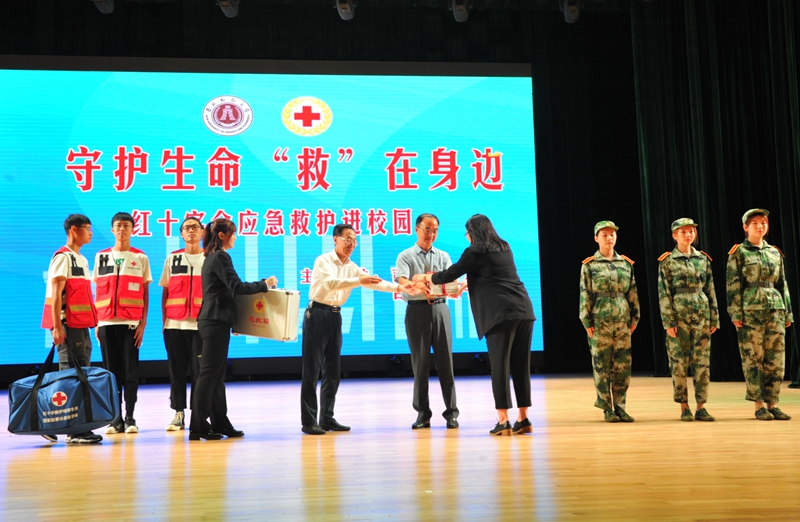 在启动仪式上,校党委副书记邹永亮代表学校接受省红十字会捐赠的培训教材3400本、培训教具模拟急救人70具、急救包1310个。吉林省红十字会健康教育培训师向参加仪式的师生们讲授急救技术《心肺复苏》和《包扎技术》。启动仪式后,学校将在学校教职工和2019级新生中开展应急救护专题培训。(审核人 徐长岭)