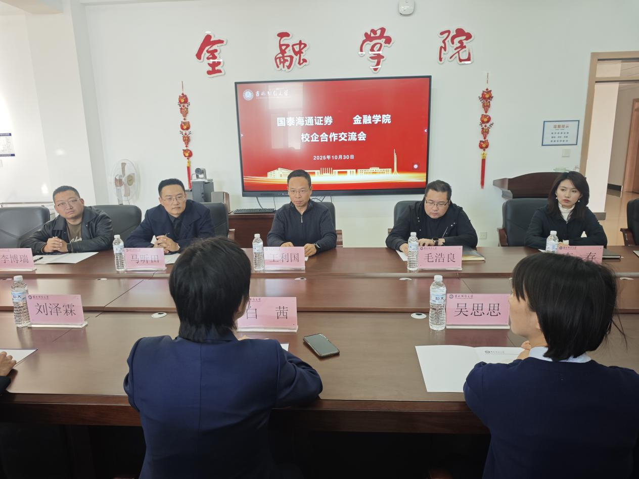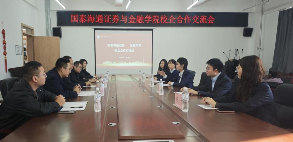 本网讯(金融学院 供稿)10月30日,金融学院与国泰海通证券吉林分公司举办校企合作交流会,双方围绕推动产教融合向纵深发展,助力金融行业高素质人才培养与就业进行了深入交流。