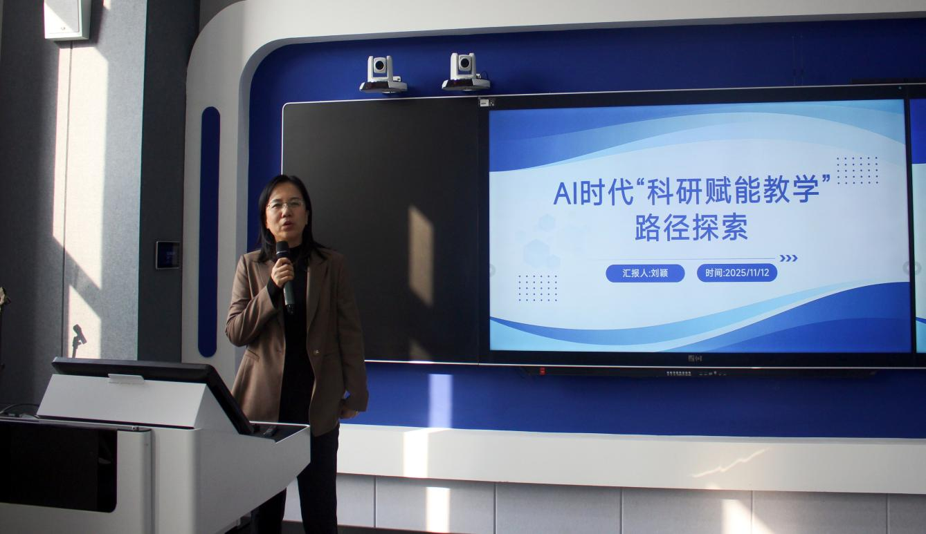 管理科学与信息工程学院刘颖教授围绕“AI时代‘科研赋能教学’路径探索”主题展开分享。她从宏观角度结合主持国家自然科学基金等24项科研项目的实践经验,强调通过大数据分析技术重构教学内容体系,以科研项目案例反哺人工智能时代背景下的课堂教学、微专业建设,实现人才培养的提质优化。