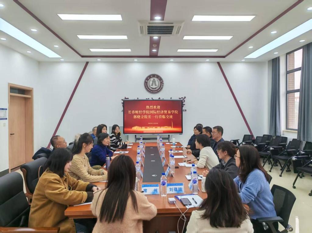 本网讯(国际经济贸易学院 供稿)11月26日,长春财经学院国际经济贸易学院院长郭晓立一行到访我校国际经济贸易学院,双方就国际商务专业建设中的课程建设、实习实践、学科竞赛等议题开展座谈。