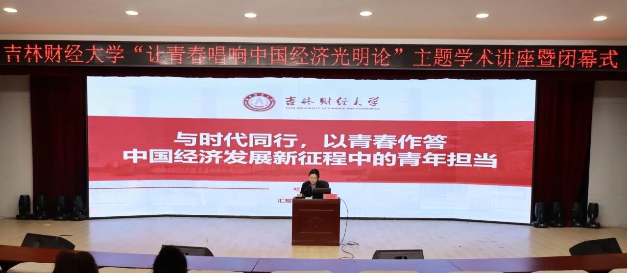 本网讯(校团委 供稿)12月10日,学校举行“让青春唱响中国经济光明论”主题学术讲座暨闭幕式。活动中,马克思主义学院2024级研究生刘禹昕以《与时代同行,以青春作答——中国经济发展新征程中的青年担当》为主题进行了主旨分享。