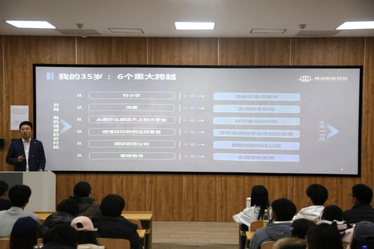 曹良克董事长以自身35岁6次跨越为主线,用“河南乡村——博士——AI创业者”的逆袭故事,为统数学子描绘出一条“先实干、再深耕”的成长通道路径。他结合自身经历,把AI时代的就业、创业机会进行拆解,形成可复制的选择逻辑,为学生绘制了一份“听得懂、用得上”的职业导航图。
