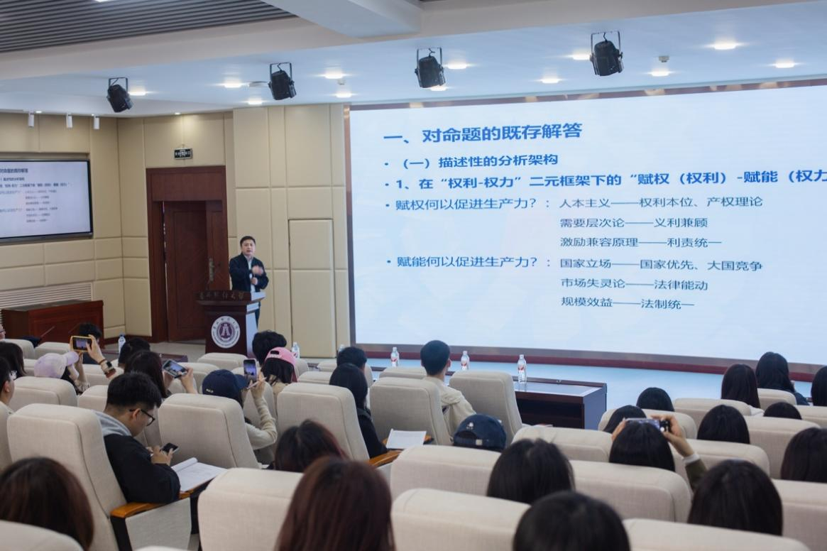 百余名师生参与,讲座由法学院院长仇晓光主持。