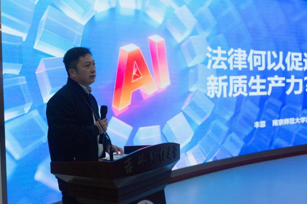 丰霏围绕“法律促进新质生产力”这一核心命题,从既有解答、深层追问、实践例证三个维度进行系统阐释。在既有解答部分,丰霏教授梳理了“权利——权力”二元框架下的赋权与赋能逻辑,阐明赋权以人本主义、产权理论、激励兼容原理激发创新活力;在此基础上,丰霏进一步提出建构性思维模型,深入剖析法律作为理念指引、制度框架、行为规范对新质生产力的引导、保障与激励作用。针对新质生产力科技创新、效率提升、发展持续、产业升级、经济转型、领域竞赛等特殊性,丰霏提出相应应对路径,强调法律需兼顾制度供给与创新空间、风险治理与利益共享、本土法治与涉外法治协同。