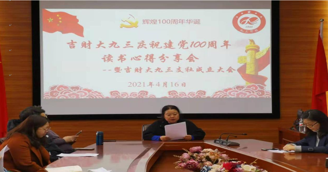本网讯(九三学社吉林财经大学委员会 赵宇飞)为了庆祝建党100周年,回顾党的光辉历程,讴歌党的丰功伟绩,九三学社吉财大委员会于4月16日下午在综合楼管信学院会议室举行了“学思践悟 淬炼初心”庆祝建党100周年读书心得分享会暨九三学社吉财大委员会支社成立大会。