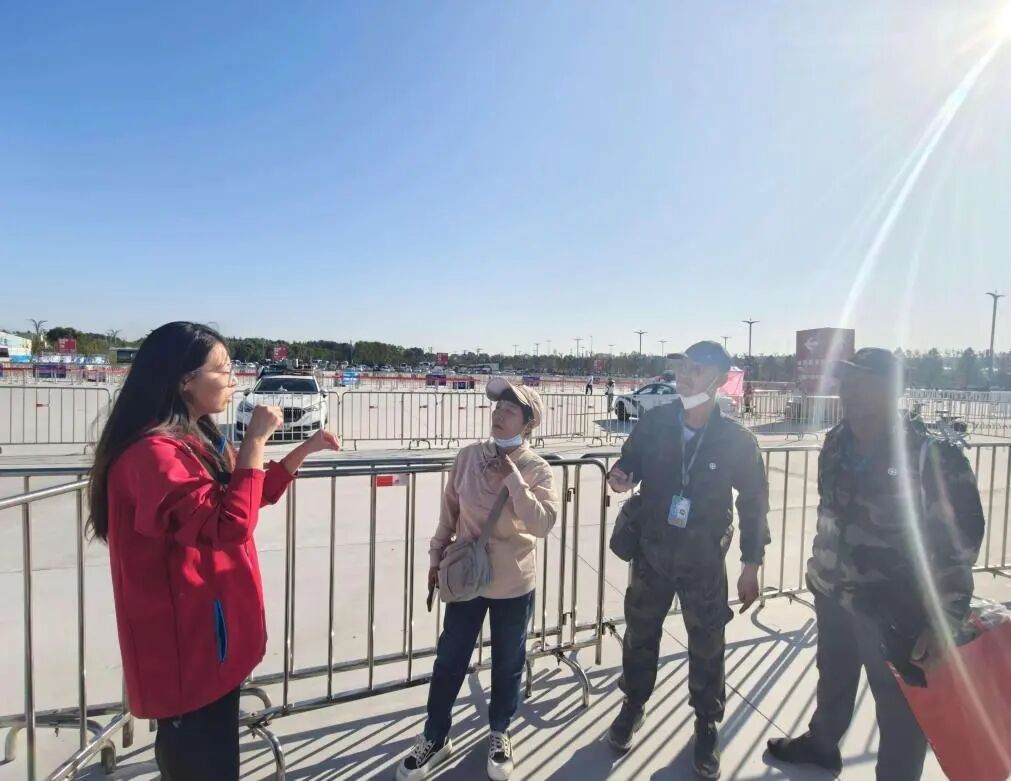 航展现场,我校志愿者们身着白T恤、红外套,负责会前的邀请函制作与实体票发放及会中的检票处信息核验工作,为数以万计的游客提供路线指引、票务咨询等服务。过程中,有部分聋哑游客在问路时遇到了困难,我校志愿者主动挺膺,用流利的手语进行交流,顺利解答了问题,得到了主办方和游客们的一致认可。