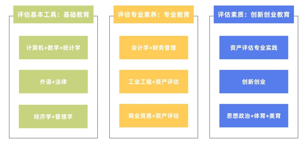 资产评估专业为学生构建现代资产评估人员必备的科学知识体系,加强实践教学,增强学生的就业能力,为国家、地区经济建设培养多层次的“上手快、后劲足、适应性强”的高素质应用性资产评估人才。