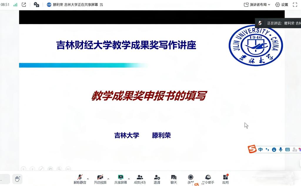 为进一步精准提升省级教学成果奖申报质量,助力教师高质量完成申报书撰写与成果凝练,3月12日,学校以线上形式举办高等教育教学成果奖申报专题辅导会。本次辅导特邀吉林大学滕利荣教授主讲,各教学单位申报团队负责人及教务处相关工作人员线上参会。